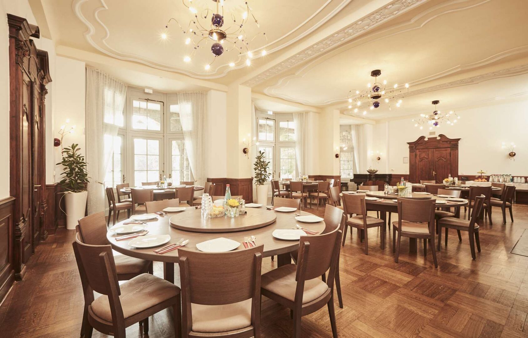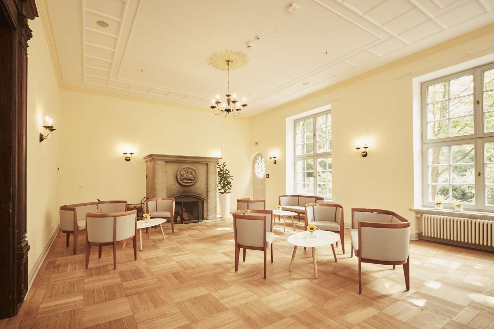 Die Liegenschaft verfügt über ca. 3.455 m² Nutzfläche und bietet aktuell 18 Einzelzimmer sowie 22 Doppelzimmer. Eine Erweiterung um weitere 10 Doppelzimmer ist baulich möglich. Ergänzt wird das Raumangebot durch einen großen Festsaal, mehrere repräsentative Salons sowie Konferenz- und Seminarräume mit moderner Ausstattung.