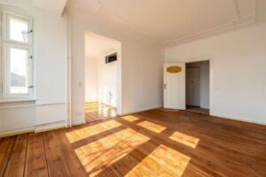 Die charmante Altbauwohnung befindet sich in der dritten Etage und wurde umfassend saniert – ein Erstbezug, der historischen Charakter und modernen Wohnkomfort auf besondere Weise vereint. Großzügige, lichtdurchflutete Räume, hohe Decken, stilvoller Stuck sowie klassische Kassettentüren unterstreichen den Altbaucharme. Ein attraktiver Grundriss und ein klassischer Erker sorgen für ein angenehmes Wohngefühl mit viel Raum zur Entfaltung. Die originalen Dielenböden wurden aufgearbeitet und verleihen den Räumen zusätzliche Wärme und Authentizität.